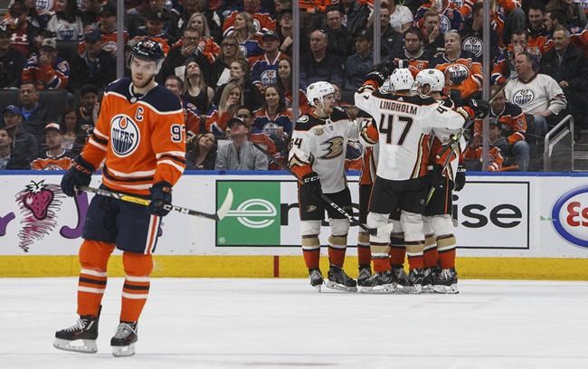NOTES: It was the fourth and final meeting between the two teams, with Edmonton going 2-0-1 in the previous three. Seven of their past eight games had been decided by one goal, including five which went to extra time. … The Ducks have been hampered by injuries of late, missing the likes of Ondrej Kase (shoulder), Chad Johnson (head), Brendan Guhle (upper body), Ryan Kesler (hip), Nick Ritchie (upper body), Ryan Getzlaf (upper body), Josh Manson (upper body) and Troy Terry (lower body). … In an unusual situation, Ducks defenceman Jake Dotchin was ejected early in the game once it was discovered he had officially been listed as a scratch.