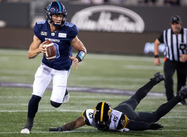 McLeod Bethel-Thompson started for Toronto as incumbent James Franklin didn’t dress. Bethel-Thompson completed 11-of-17 passes for 222 yards and a TD in the first half, playing all but two snaps — taken by Canadian rookie Michael O’Connor — before Brandon Bridge of Mississauga, Ont., opened the third.