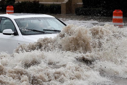 In San Antonio, a man walking his dog before dawn Saturday was swept into a flooded drainage ditch and disappeared, fire officials said. The dog is safe.