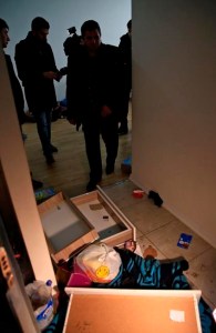 Activists spread a banner reading “War criminals must shut up so we can talk about victims,” but were thrown out and allegedly beaten outside the venue.