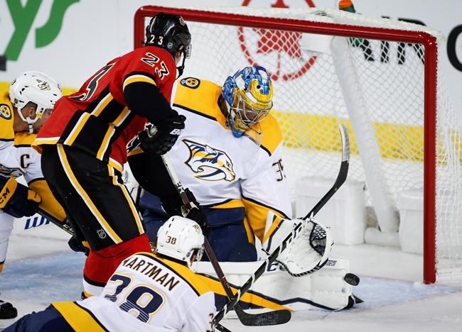 Nashville struck first with Johansen scoring 51 seconds into the game. After its first shot, Calgary went over 16-and-a-half minutes before testing Rinne again, with Lindholm snapping the streak, burying a Johnny Gaudreau set-up at 18:43.
