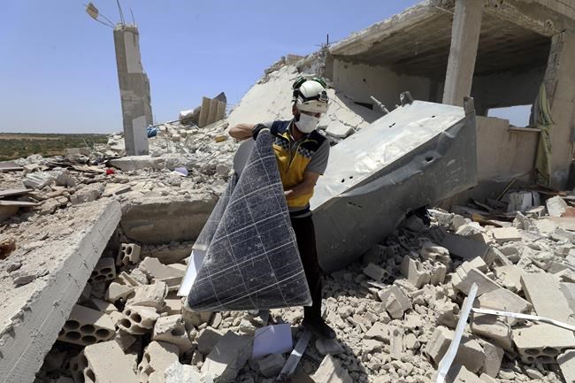 The Britain-based Syrian Observatory for Human Rights also reported the shelling and casualties. The Observatory said the shelling was followed by airstrikes by suspected Russian warplanes that hit areas west of Idlib city. The White Helmets said one of its centers was targeted and destroyed in the air raid, putting it out of service. Five volunteers were slightly wounded. A water station in the area was also hit and put out of service, the White Helmets said.