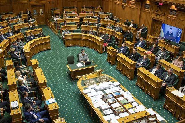 Zelenskyy delivered his message via video link to lawmakers who packed the debating chamber at 8 a.m. Wednesday. He became just the second foreign leader to address New Zealand’s parliament, after Australia’s Julia Gillard did so in 2011.
