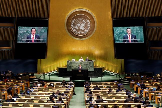 Speaking at the U.N. General Assembly’s major annual gathering, he complained that the U.S. and South Korea are failing to follow through on separate summit pledges.