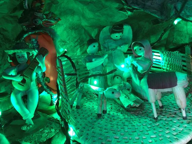 Some of the 333 nativity displays show a very South American Savior — his cradle watched over by llamas and alpacas, or with Amazonian serpents nearby scattering multicolored parrots.