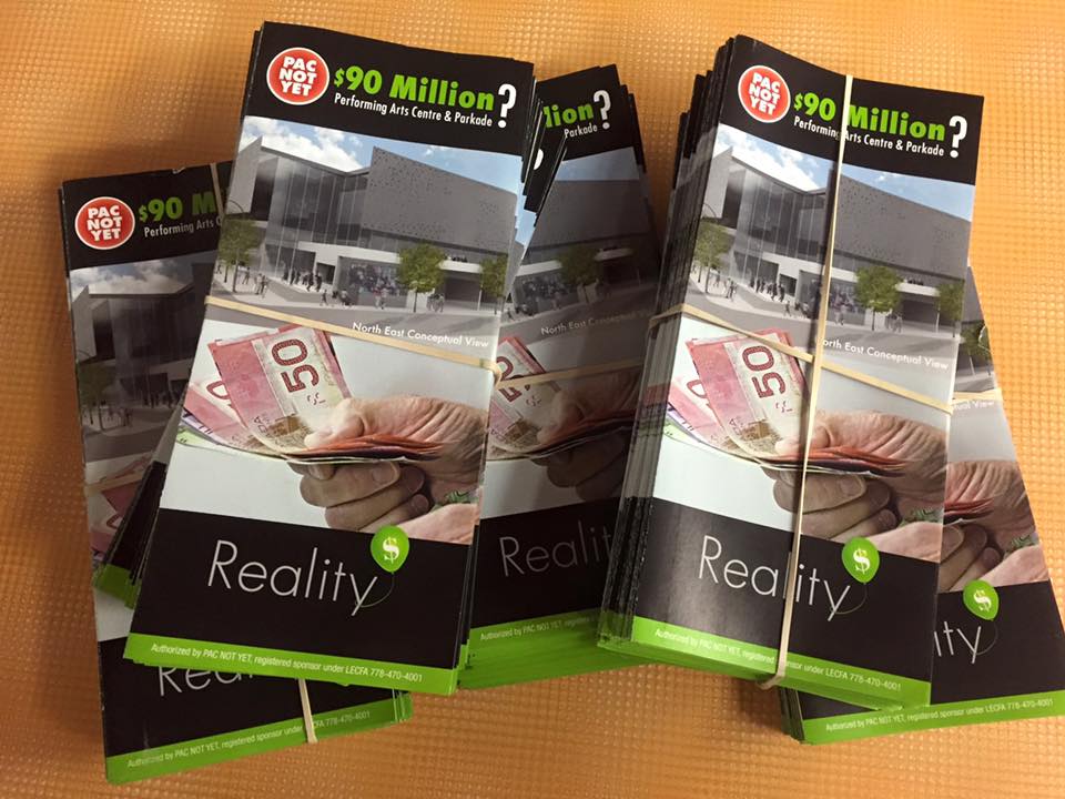 The PAC Not Yet group raises various concerns within its recent mailout, including concerns over building a performing arts centre when Cascades Casino has plans to build a theatre and the lack of fundraising from the arts community in Kamloops for the project.