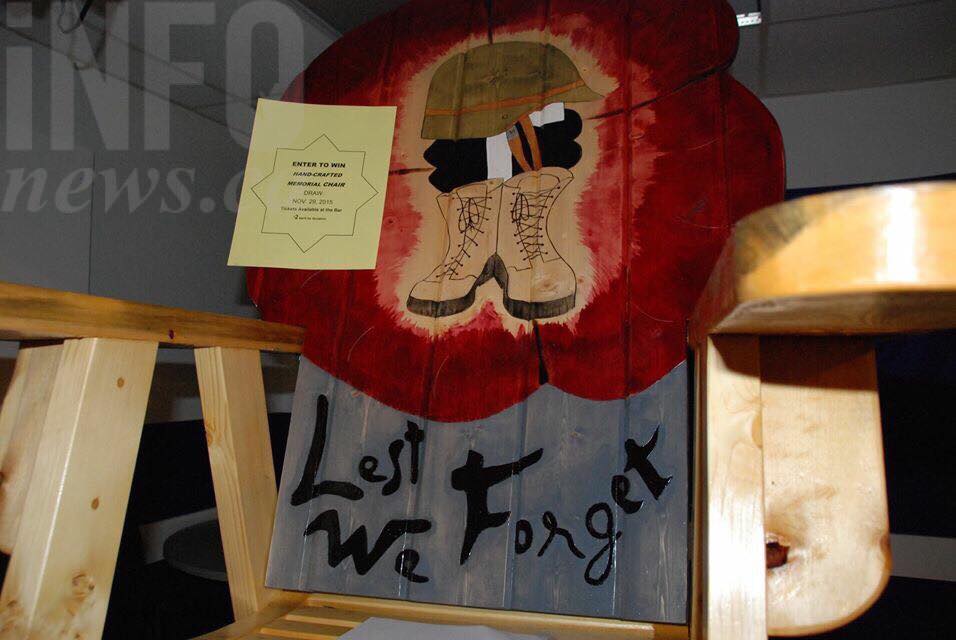 McGhee, a member of Legion 52 and a member of the Canadian Armed Forces for seven years, says he wants the proceeds from the chair's sale to go toward "keeping the legion alive." He built a similar chair for an event at the legion in Vernon and it raised $700.
