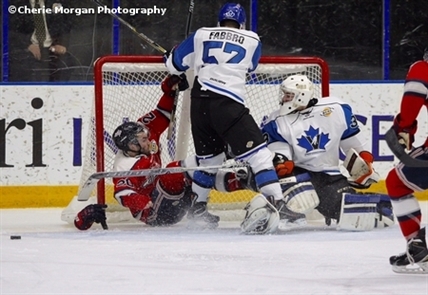 Cowichan Valley clawed back and on a power-play of their own late in the middle frame. Driscoll stopped the knuckling point-shot but bobbled the rebound, and it fell to Matt Hudie in front at 15:47 to tie it 2-2.