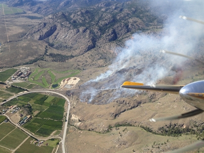 The fire got its spark on Wednesday thanks to a crashed big rig. A semi-trailer's brakes overheated as it traveled down a steep section of Highway 3 near Osoyoos. The driver veered onto a runaway lane at the base of Anarchist Mountain but the truck overturned and burst into flames.