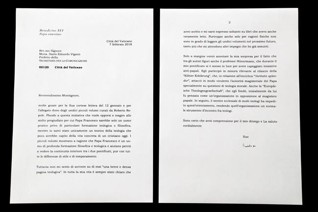 VATICAN CITY – Stung by accusations of spreading “fake news,” the Vatican on Saturday released the complete letter by Emeritus Pope Benedict XVI about Pope Francis after coming under blistering criticism for selectively citing it in a press release and digitally manipulating a photograph of it.