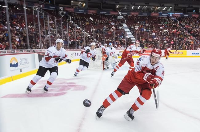 VANCOUVER — Philipp Kurashev had a hat trick as Switzerland clinched a spot in the quarterfinals with a win over Denmark at Rogers Arena.