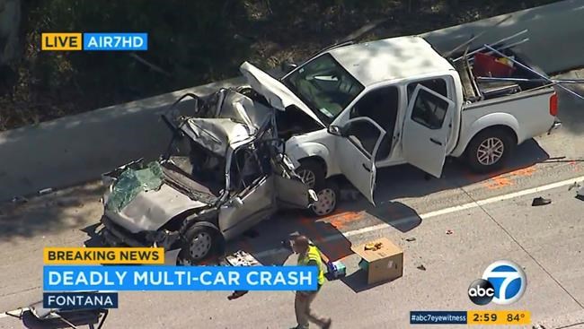 FONTANA, Calif. – Two adults and two children were killed in a highway crash outside of Los Angeles on Friday after one car smashed into another vehicle that had overheated, the California Highway Patrol said.