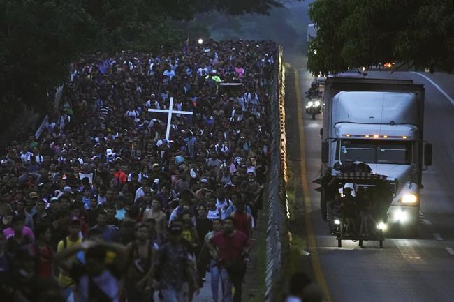 HUIXTLA, Mexico (AP) — Several thousand migrants walked on through southern Mexico on Tuesday, covering ground while authorities showed no signs yet of trying to stop them.