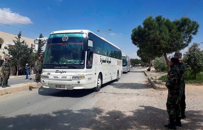 Al-Ikhbariya TV said on Saturday that 35 buses left the towns of Ruhaiba, Jayroud, and al-Nasriya, carrying hundreds of rebels and their families to opposition-held territory in northern Syria.