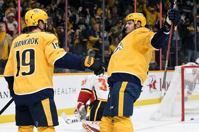 Jarnkrok scored his first short-handed goal on a 2-on-1 breakaway after a Calgary turnover, sending a wrist shot into high near post past Rittich, boosting Nashville’s lead to 3-1 at 4:36 of the second period.