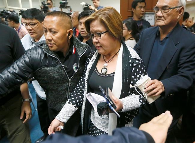 Leila de Lima said the accusations against her were part of an attempt by Duterte to muzzle critics of the clampdown that has left more than 7,000 suspected dealers and small-time users dead. She questioned why the court suddenly issued the arrest order when it was scheduled Friday to hear her petition to throw out the charges of receiving bribes from detained drug lords.