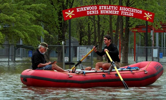 The river began dropping Friday at Davenport after eclipsing a record set in 1993. Officials said it could be days before the water is once again confined within the river’s banks.