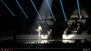 He uses a $10 bill to show the diffraction grating built-in to the plastic cash.