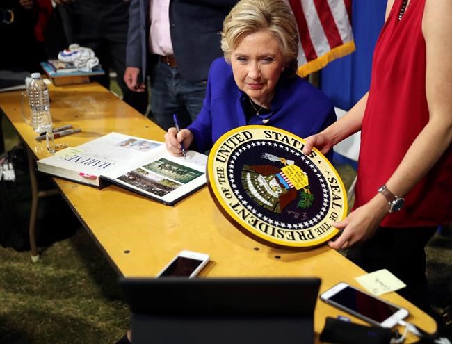Reporters in vans further back in the motorcade could hear cheers from the direction of Clinton’s vehicle after the final out in the Cubs’ thrilling 8-7 victory in the 7th game. An aide said Clinton staffer and Cubs fan Connolly Keigher pulled one of the Cubs’ signature “W” flags from her purse and she and Clinton held it up in celebration.
