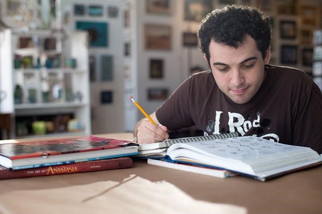 Owen is a fan of recent Disney films like “Zootopia” and Pixar’s “Inside Out.” But as Williams notes, “Owen likes the classics.” He identifies most with sidekicks and has filled sketchbooks with loving drawings, writing: “I Am the Protekter of Sidekicks.” His favourite movie, unmistakably, is “Aladdin.”