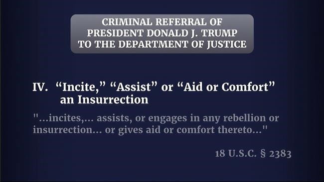 Easily the most consequential statute invoked by the committee is one that makes it a crime to either incite or aid an insurrection or rebellion against the government. The statute bars anyone convicted of it from holding future office.