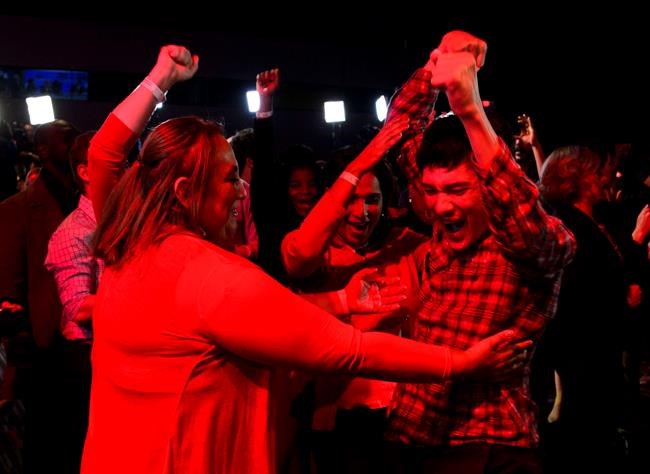 With results still trickling in early Tuesday, the Liberals had 156 seats — 14 short of the 170 needed for a majority in the 338-seat House of Commons.