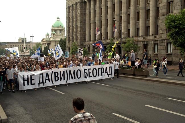 BELGRADE, Serbia – Thousands of people took part Saturday in the latest in a series of protests in Belgrade triggered by shady demolitions in a popular city area marked for a United Arab Emirates-financed real estate project.