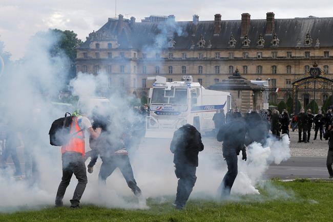 On Tuesday, masked troublemakers hurled paving stones and other projectiles, mainly along the Boulevard du Montparnasse, in what Police Chief Michel Cadot said was “extreme violence” not seen by officers in years. Ten public buildings, including Necker Hospital and a ministry, suffered damage, he said.