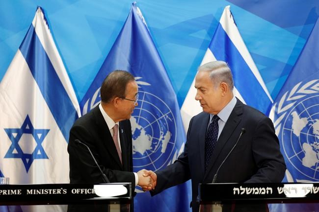 Netanyahu asked Ban to use his final six months in office to rectify what he called the United Nations’ unfair treatment of Israel. He singled out the U.N. Human Rights Council, which he said always condemns Israel, the “country that does more to promote and protect human rights and liberal values than any other in the blood-soaked Middle East.”