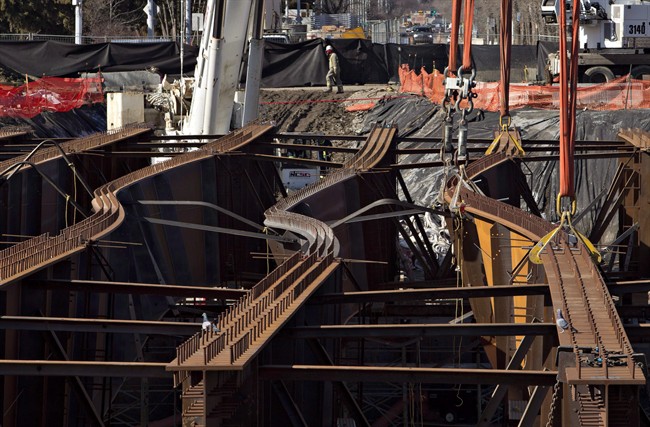 EDMONTON – Three large steel girders that buckled on a key bridge under construction in Edmonton last month are being removed for repair or replacement.