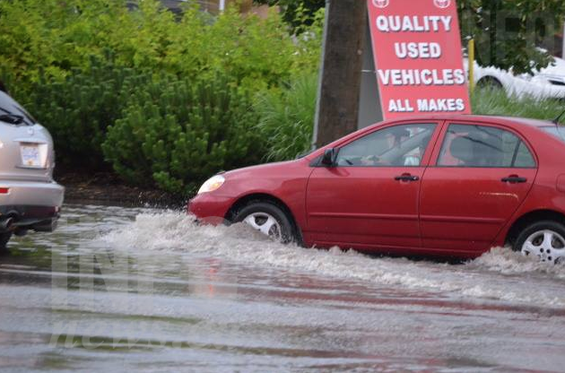Vernon was hammered by heavy rain and lightning at about the time the storm broke in Kelowna and there was some flash flooding, while Penticton skies dropped hail at about 3 p.m.