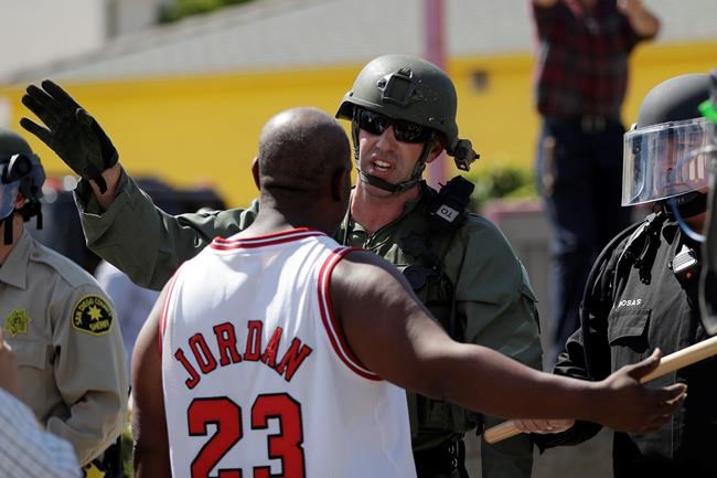 That brought police and sheriff’s deputies in riot gear closer to the protesters, some of whom threw water bottles and beer cans at them.