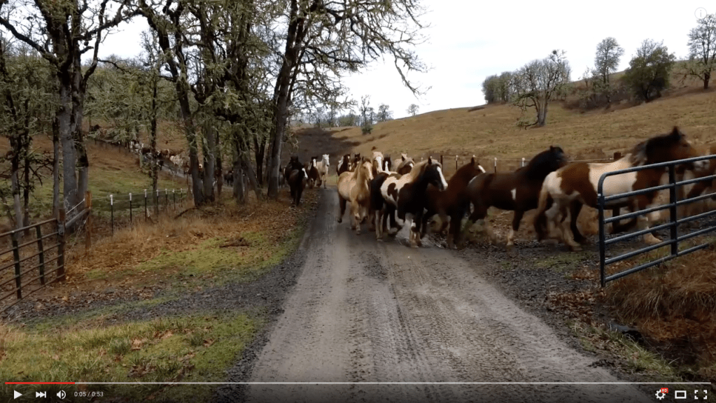 In this video posted by the Humane Society in the U.S. a heard of over 100 rescue horses at the Duchess Sanctuary outside Oakland, Oregon are rotated to a new pasture.