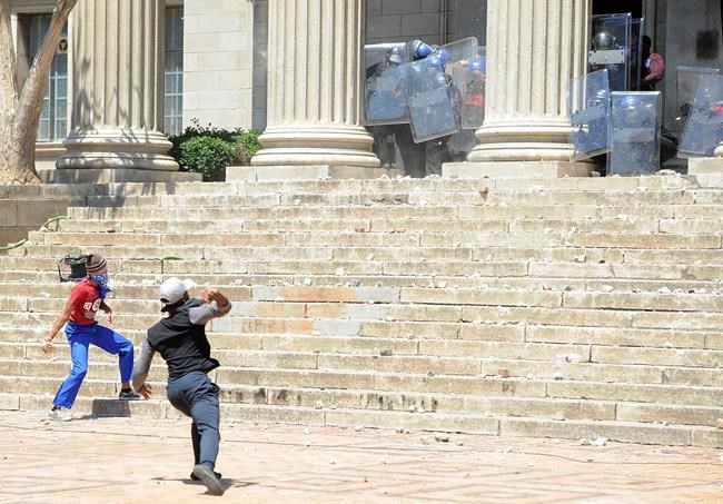 JOHANNESBURG – One of South Africa’s top universities descended into violence on Monday, with police firing tear gas, rubber bullets and water cannon at stone-throwing students who are locked in a bitter national dispute with administrators and the government over demonstrators’ demands for free education.