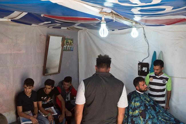 BAHARKA CAMP, Iraq – Reports about the battle for Mosul play on the TV set in the makeshift barber shop where Faris Khatham cuts hair, but sometimes the news is so overwhelming that he has to change the channel to a sports program.