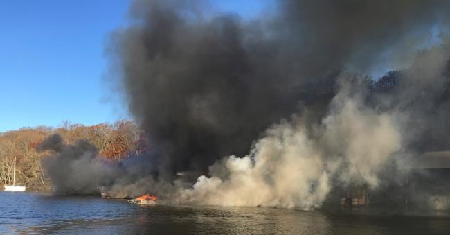 The blaze was first reported about 7 a.m. by a neighbour who went to the scene and alerted people staying on their boats, Goodman said.