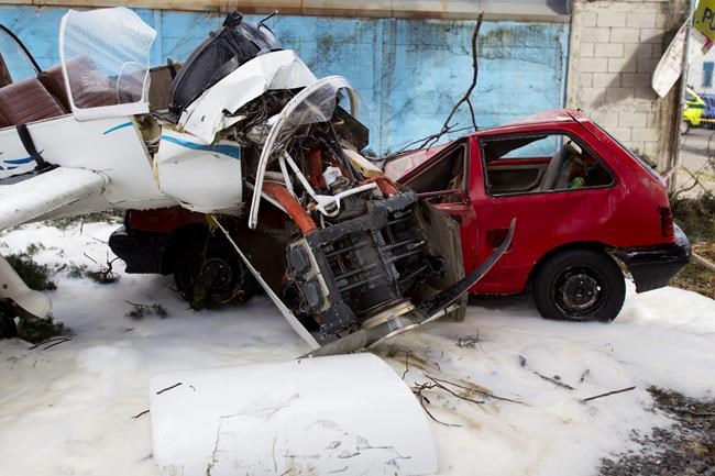 Ruano says it was headed for the country’s Pacific coast but crashed in a parking lot near the airport Friday. One car was destroyed.