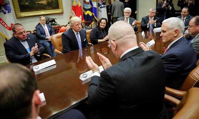 President Donald Trump is opening what his team has dubbed “Day One” of his presidency by meeting with business leaders in the White House.
