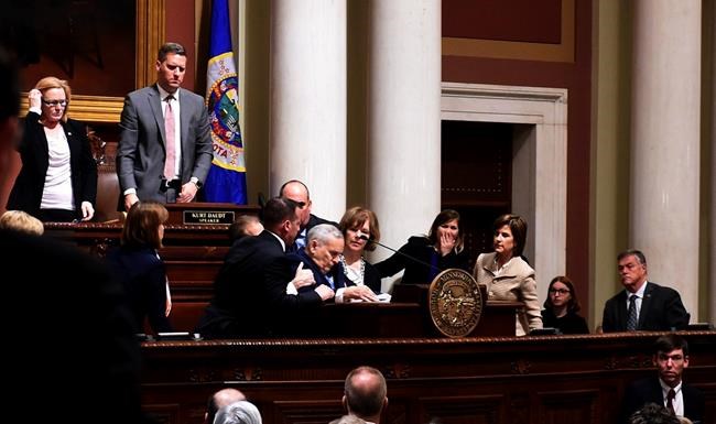 Sen. Dan Schoen went to help the governor after the scare Monday evening before a joint session of the Minnesota Legislature.