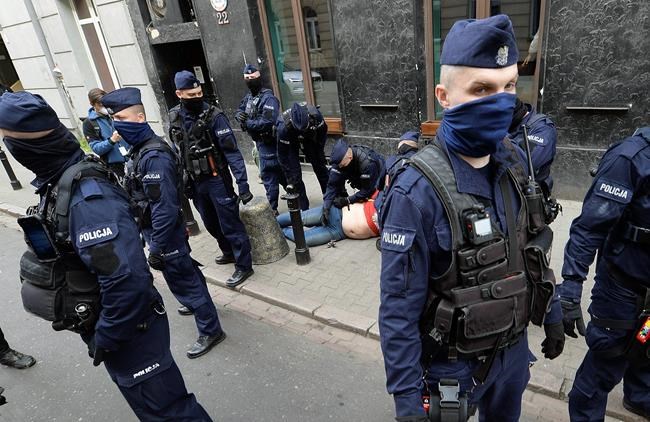 WARSAW, Poland – Police in Poland on Saturday called on a small protest by business people to disperse because of a ban on large gatherings and the need to keep social distancing amid the coronavirus pandemic .