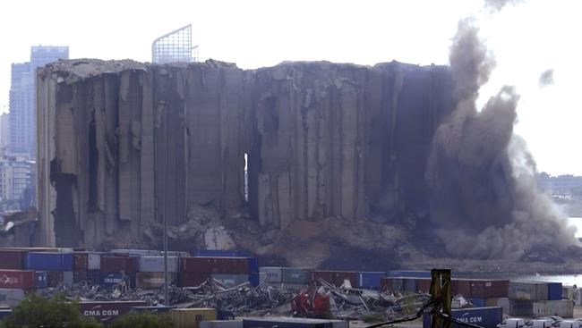 The 50 year-old, 48 meter (157 feet) tall silos had withstood the force of the explosion two years ago, effectively shielding the western part of Beirut from the blast that killed over 200 people, injured more than 6,000 and badly damaged entire neighborhoods.