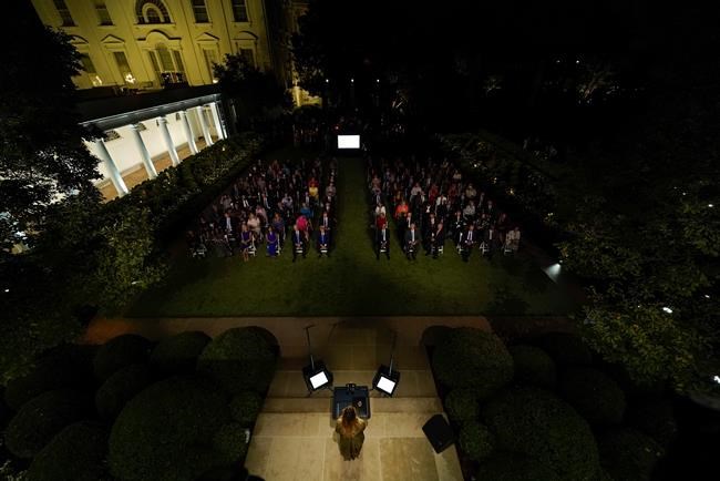 First lady Melania Trump delivered her convention speech in the newly-refurbished Rose Garden and the president formally accepted his party’s nomination on the South Lawn in front of more than a thousand people seated in rows of closely-packed white chairs, despite the ongoing pandemic.
