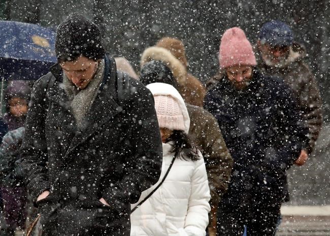 In New York City, forecasters said the first snow is expected late Monday or just after midnight Tuesday, with up to 4 inches falling by dawn. Heavy snow the rest of the day could pile 10 to 14 inches more of white stuff, with sustained winds of about 30 mph and wind gusts of up to 50 mph.