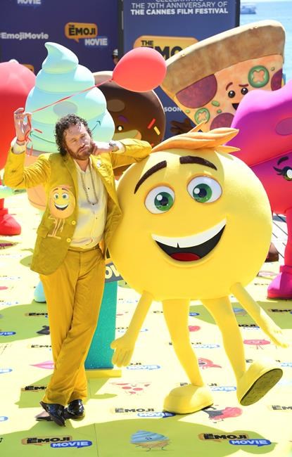 Once on dry land, the drenched actor presented the trailer to “The Emoji Movie,” out July 28.