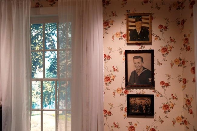 A living-room wall displays a framed map: “Esso War Map II: Invasion Edition.” It’s designed, an introductory statement says, so people can “follow the strategy of the Allies as it develops from day to day.” An open closet in the same room displays children’s military dolls, toy guns and dress-up uniforms.