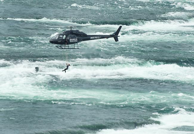 NIAGARA FALLS, N.Y. – A trapeze artist from a renowned family of daredevils hung by her teeth Thursday as a helicopter carried her above the thunder of Niagara Falls in a stunt that grabbed international attention.