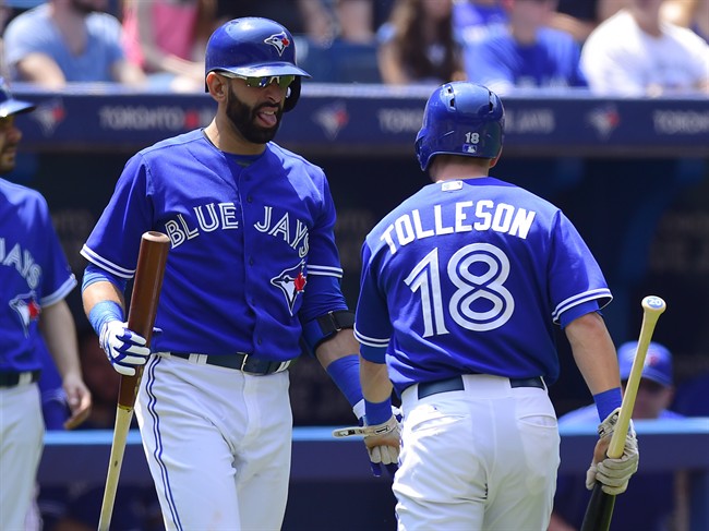Martin, a Toronto native who grew up in Chelsea, Que., had three hits and scored a run. Bautista and Josh Donaldson also had three hits apiece while Steve Tolleson chipped in with two hits and two runs to help Toronto (18-22) take the opener of the four-game series.