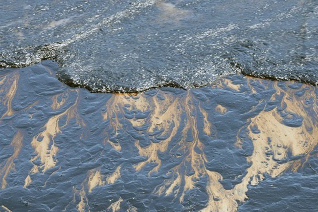She says vessels have deployed three sets of floating booms to try to keep the slicks from spreading, while other boats are skimming oil from the sea surface.