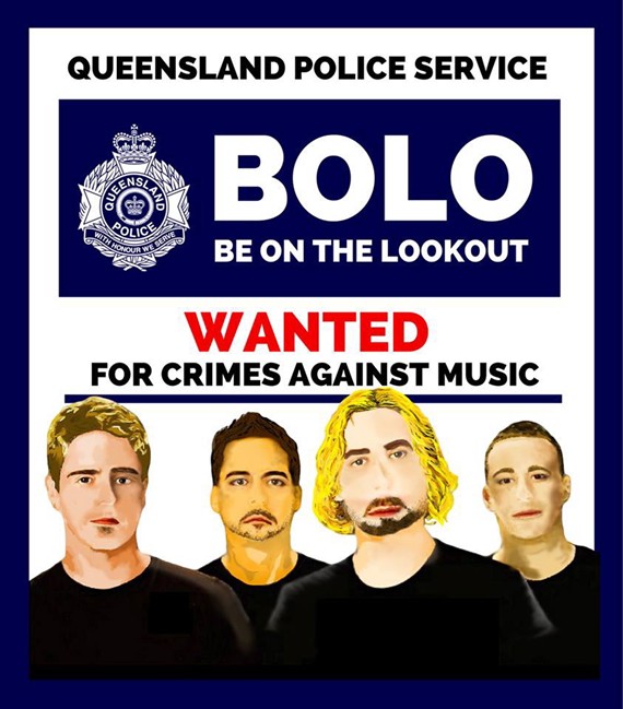 A phoney wanted poster uploaded by Queensland Police Service features an image of the group along with the words: “Be on the lookout, wanted for crimes against music.”