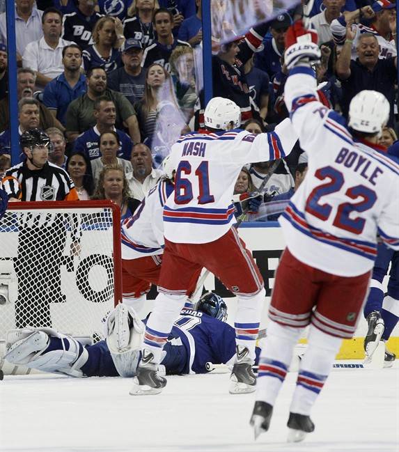 Brassard scored on New York’s first shot of this game and Yandle’s second goal of the playoffs made it 2-0 at 15:30. That came less than a minute after the Rangers killed off a penalty with help from Lundqvist, who made a nice pad stop on Stamkos to deny the Lightning star from point-blank range.